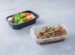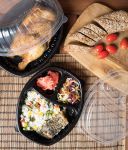 Контейнер СпК-3617-120 ПЭТ Контейнер для вторых блюд двухсекционный с ложементом для соусника с возможностью подогрева К-187х137х45-2/50С прозрачный, черный
