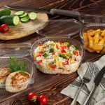 Пластиковые пищевые контейнеры - Ёмкость ЮП-РКС-500, 159*130*56 мм Пластиковые пищевые контейнеры - Контейнер СПК-115, 250 мл, Ø115*43.6 мм, чёрный, ПЭТ